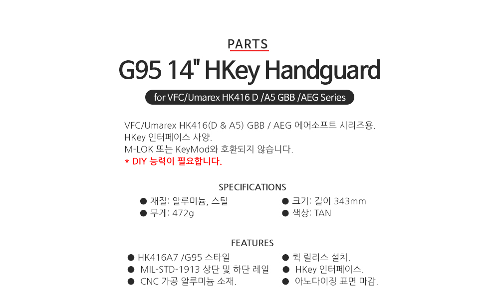 G95 14ÀÎÄ¡Hkey handguard (Tan) for VFC HK416D/A5 GBB/AEG Series